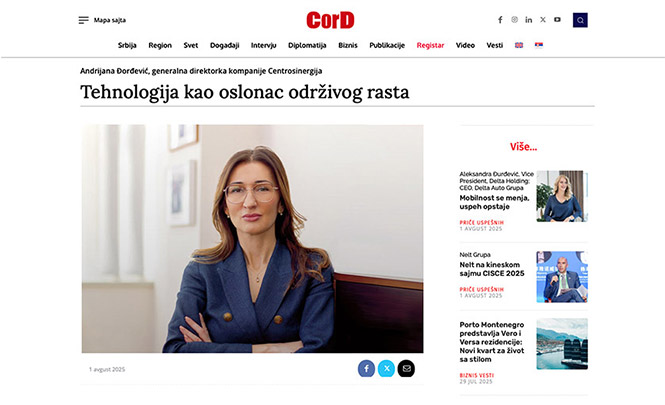 INTERVJU GENERALNOG DIREKTORA CENTROSINERGIJE ANDRIJANE ĐORĐEVIĆ U ČASOPISU CORD